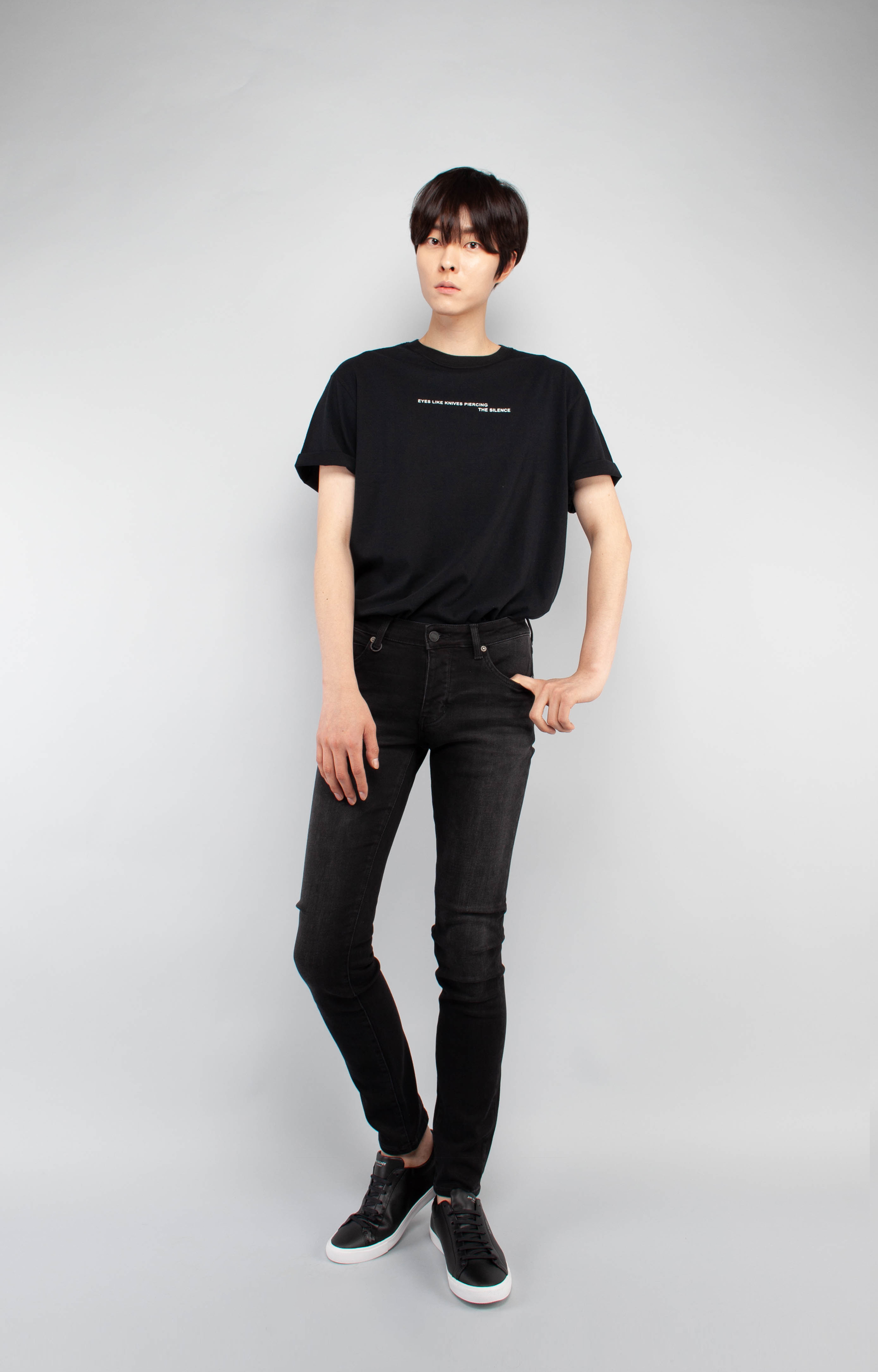 INFO : 1977年代美国歌手伊基·波普专辑封面上主要登场的紧身牛仔裤得到了灵感的Gravity牛仔是中长衬裙,采用帅气灰色水洗,能感觉到复古气息的黑色牛仔.