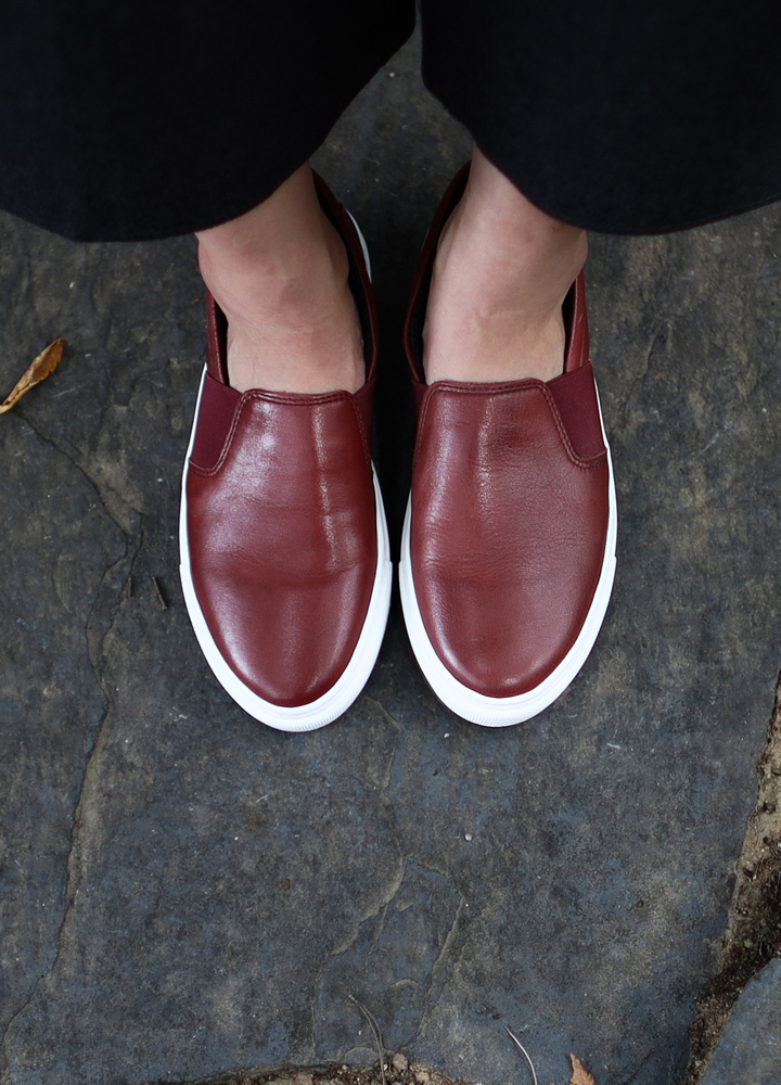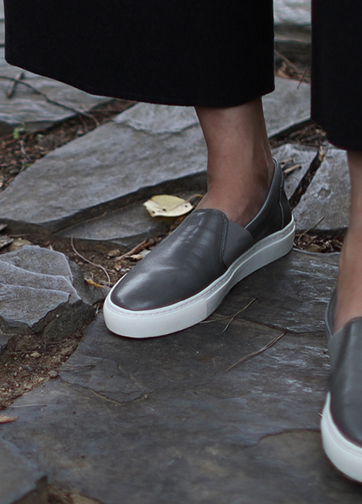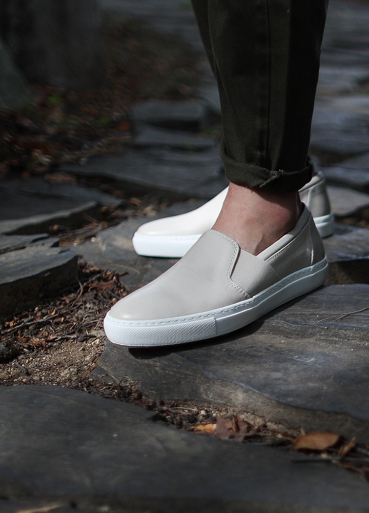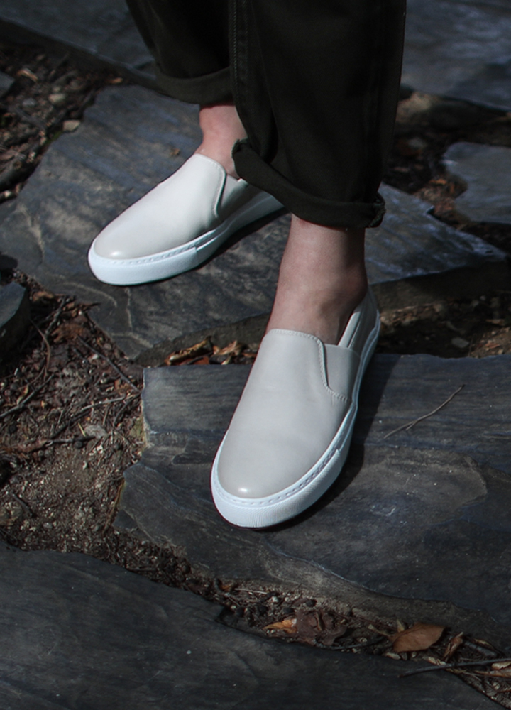 采用符合皮革颜色的独特侧松紧带处理,拥有简约又独特的设计,以厚鞋底设计实现舒适最大化的女士懒人鞋.